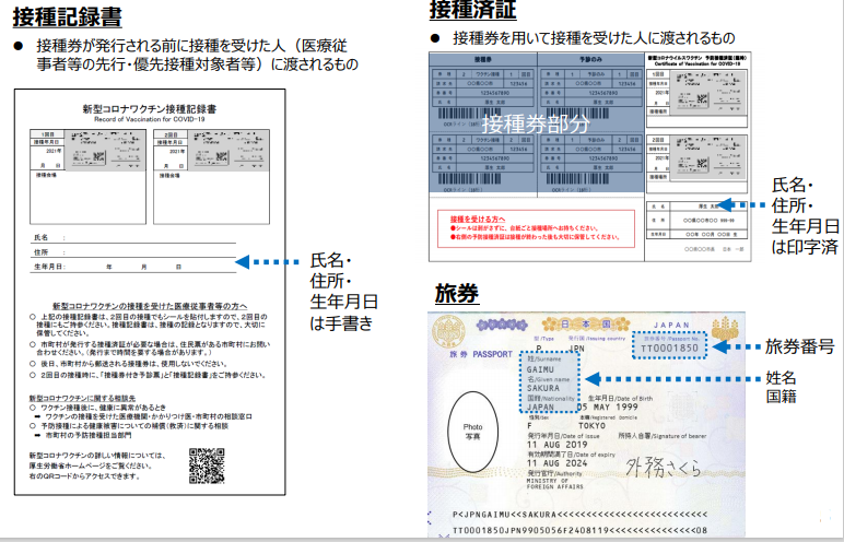 ※旅券に旧姓・別姓・別名(英字)が記載されている場合は、旧姓・別姓・別名が確認できる本人確認書類が必要となります。