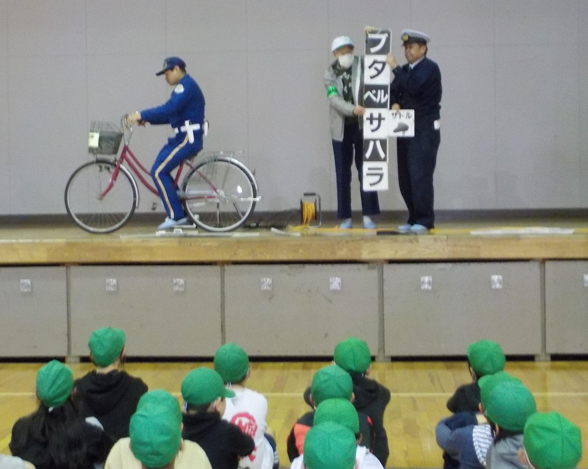 参加した小学生のみなさんは、実際に自転車に乗り、交通ルールを学びました。