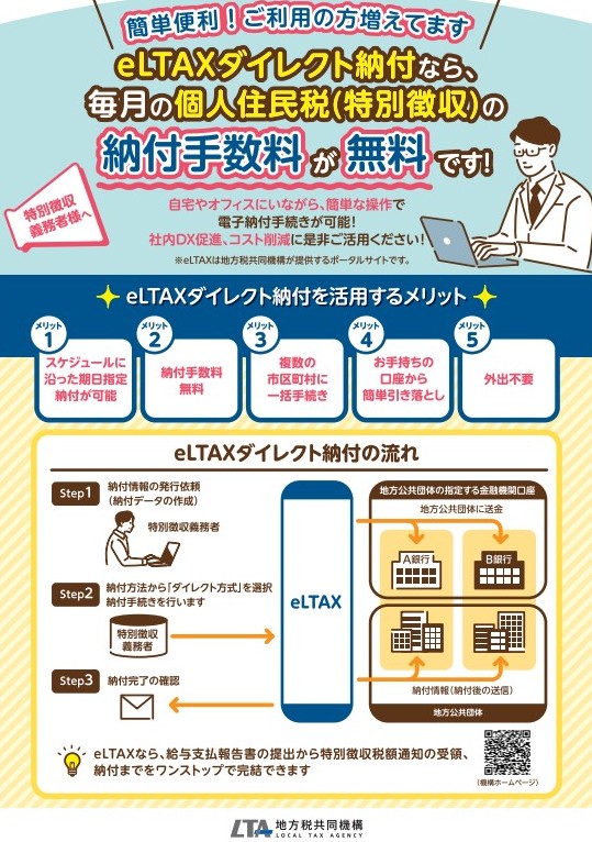 eLTAX(エルタックス)の利用開始や具体的な利用方法等に関する詳細については、eLTAX(エルタックス)ホームページをご覧ください。