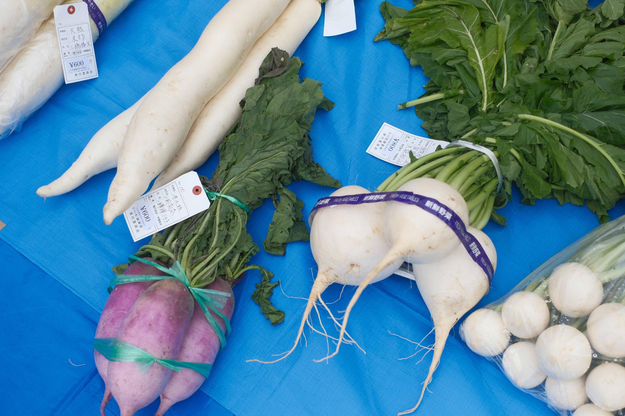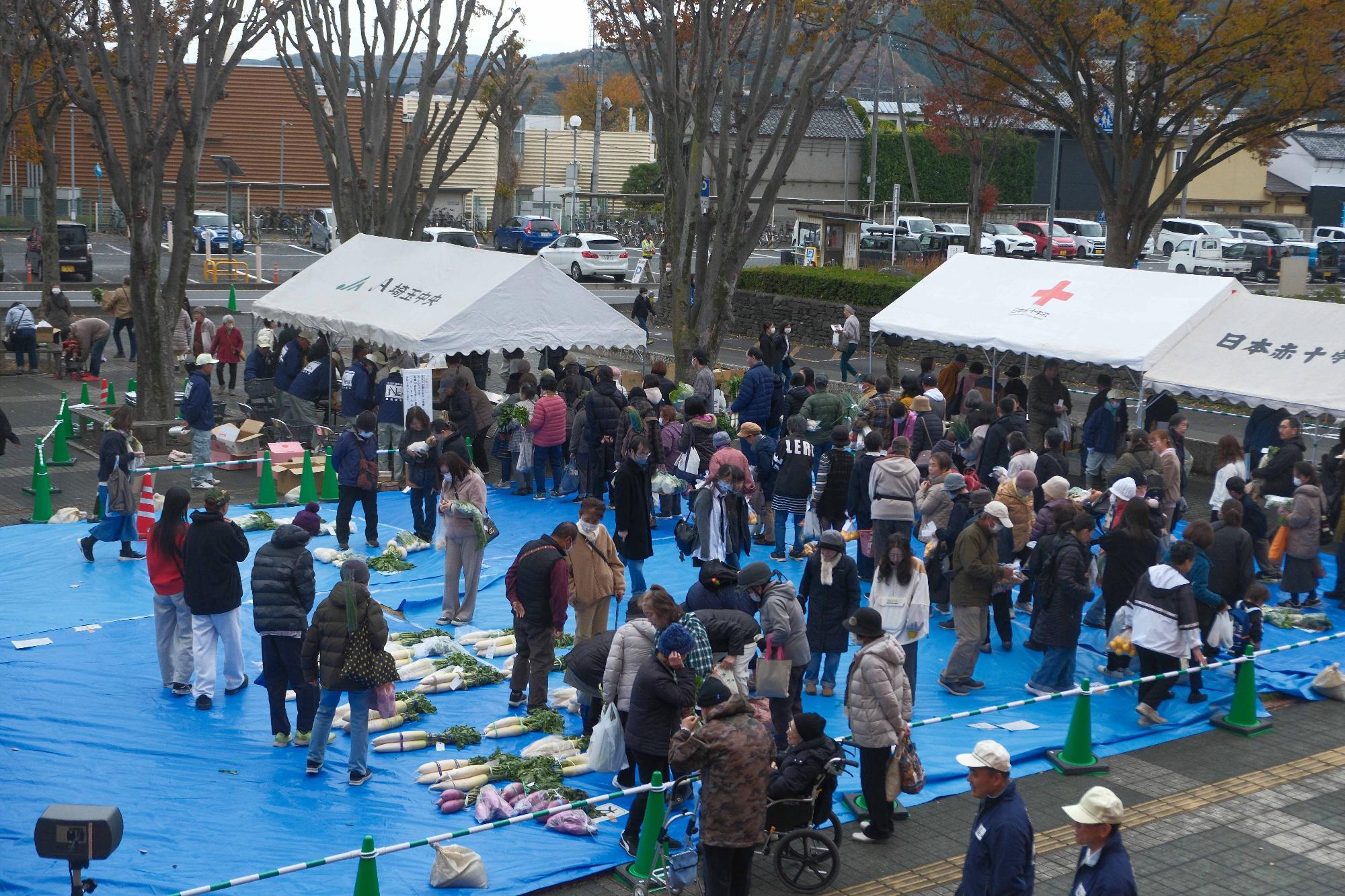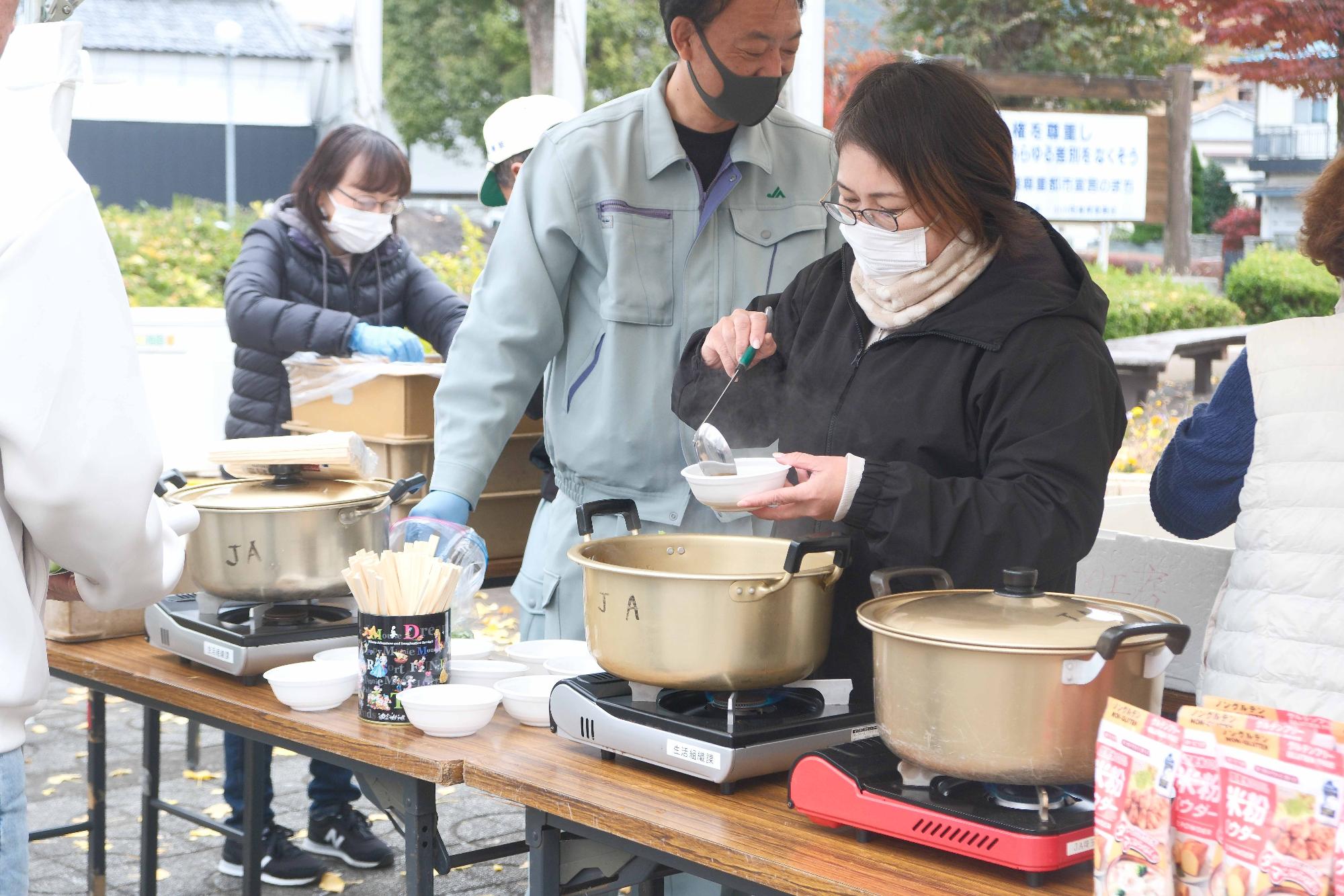 新米おにぎり・団子汁の試食、豚汁、サンプル野菜の無料配布 など