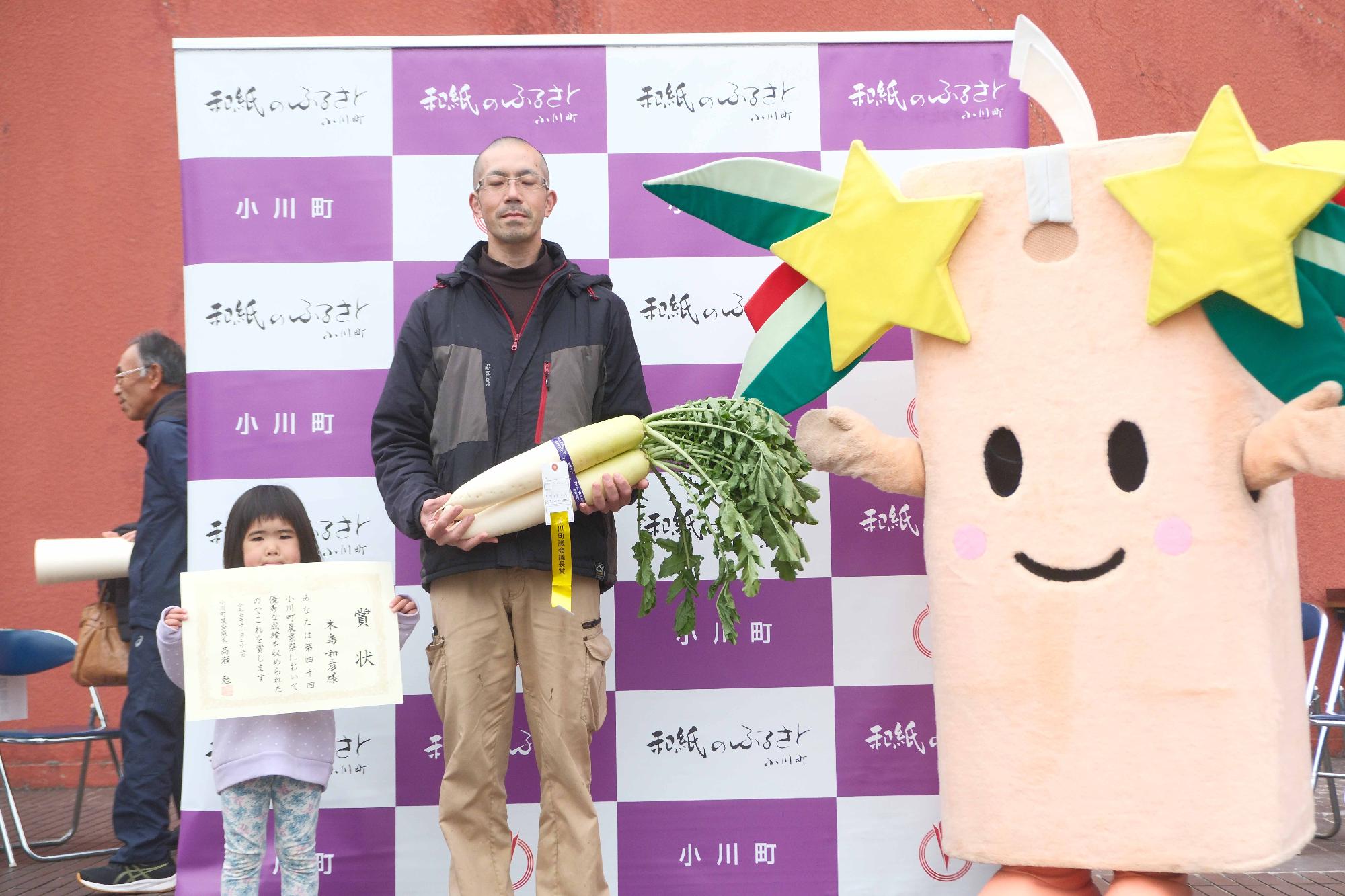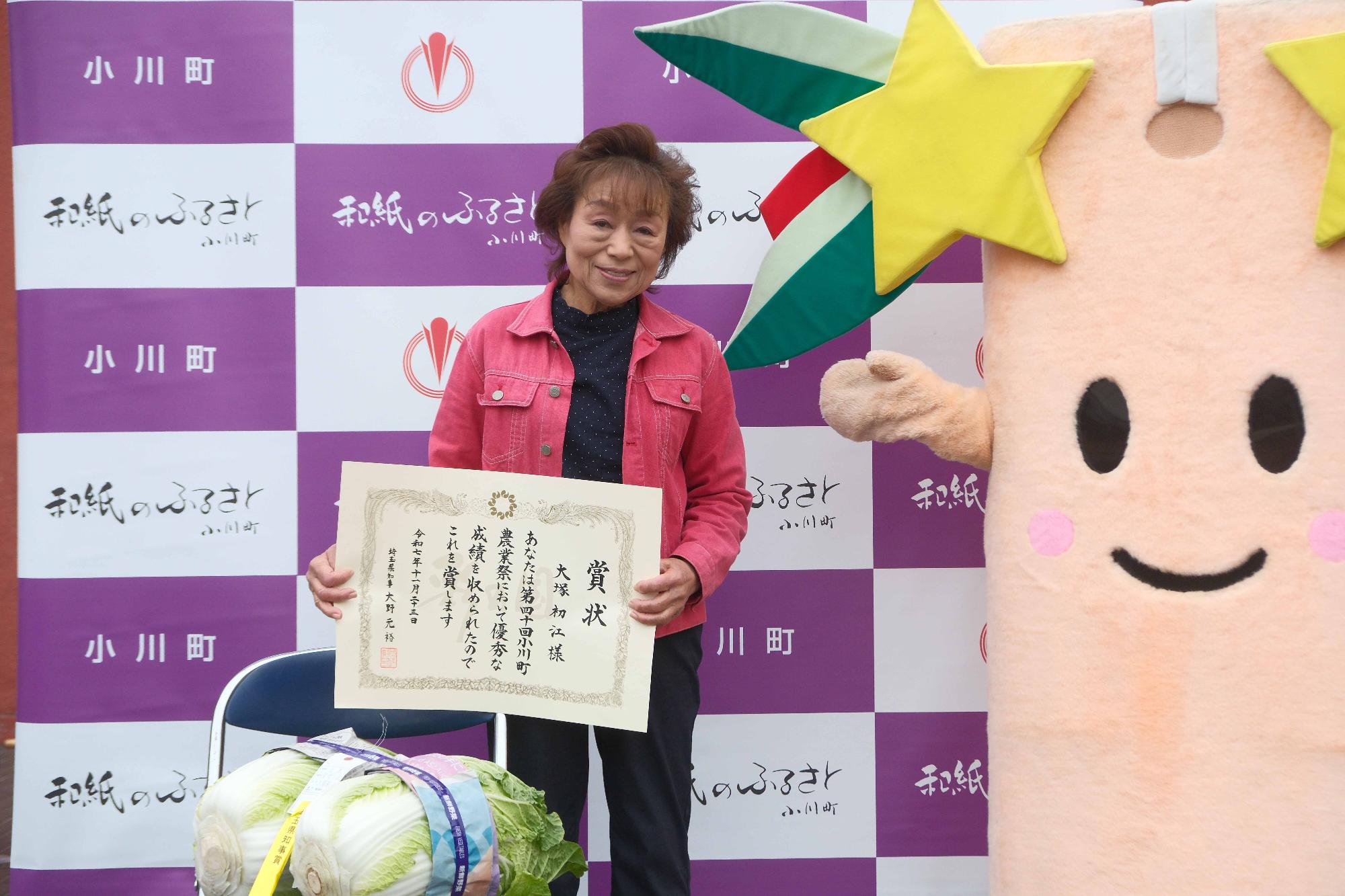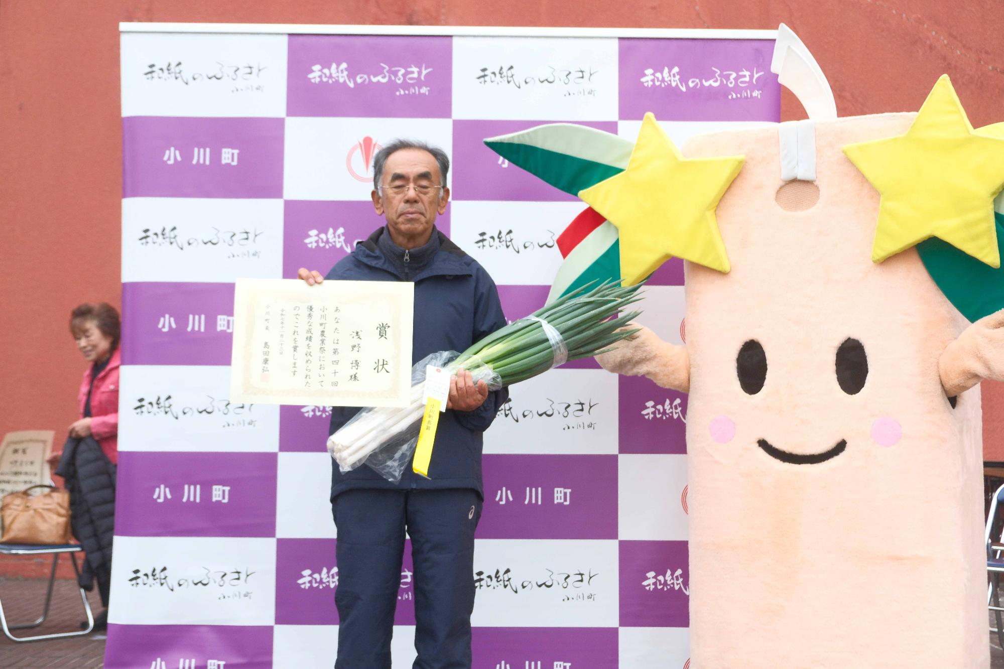 「小川町農業祭審査及び表彰規定」に基づき、22日(土曜日)に実施した品評会に出品された農産物全676点を審査し、特に優秀な農産物を出品した方などを表彰するものです。「埼玉県知事賞」をはじめとする特別賞は、7点が選考されました。また、特別賞のほか、出品された方の中から農業に対して特に貢献されている方を5名選考し、実行委員会より奨励賞が授与されました。表彰式に出席いただいた受賞者を以下のとおりご紹介します。
