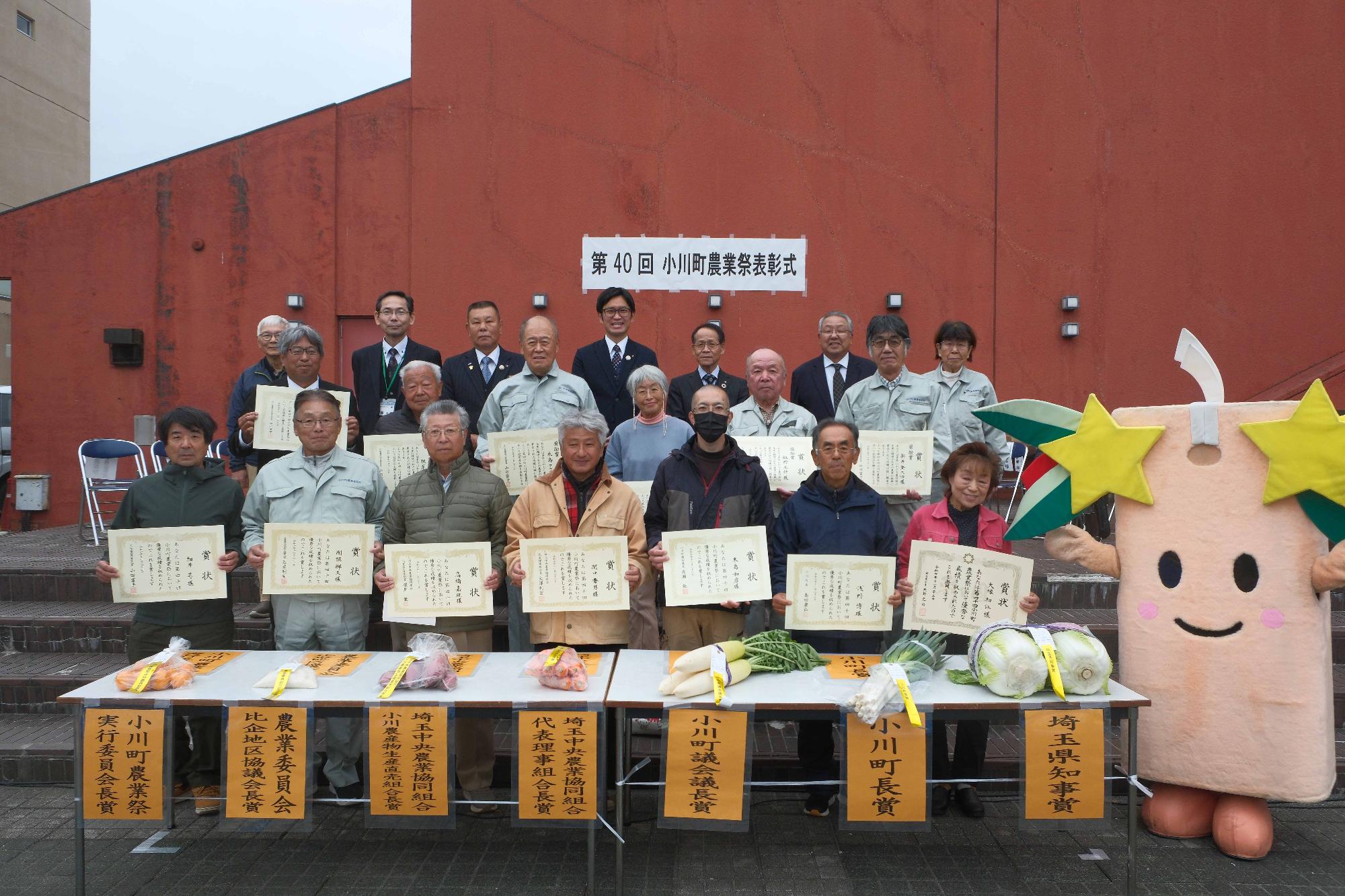 令和7年11月23日(日曜日・祝日)に第40回農業祭を開催しましたので、その様子をお知らせします。当日は、22日(土曜日)に実施した品評会において優秀な農産物を出品された方などへの表彰式をはじめ、出品された農産物の展示即売会や関係団体による出店イベント等を行いました。特に、小川町の新米で作ったおにぎりの試食会、豚汁やサンプル野菜(有機)の無料コーナーなどは多くの人出で賑わいました。次回の農業祭にも、引き続き、多くの農家の皆さんの出品をお待ちしています!