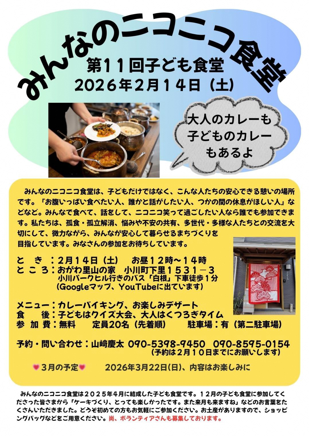 子ども食堂「みんなのニコニコ食堂」は、小川町社会福祉協議会、ココット、埼玉県社会福祉協議会子ども食堂未来応援基金助成事業、埼玉県子ども食堂ネットワーク