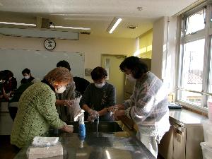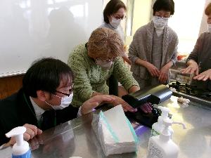 講師に埼玉県保健医療部食品安全課の渡部氏をお招きし、食中毒予防について講演いただき、手洗いについては実際に手を洗うところから実践しブラックライトを当て、汚れの残りやすいところなどを学びました。